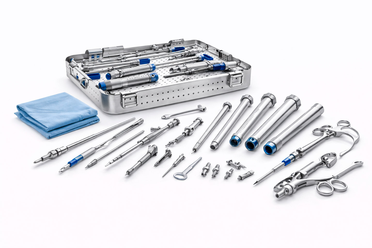 Instrumental completo para intervenciones neuroquirúrgicas.